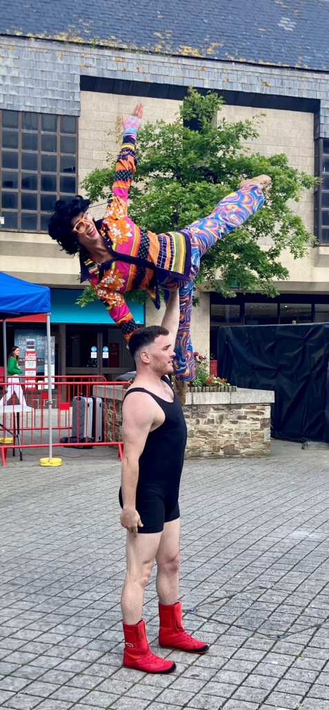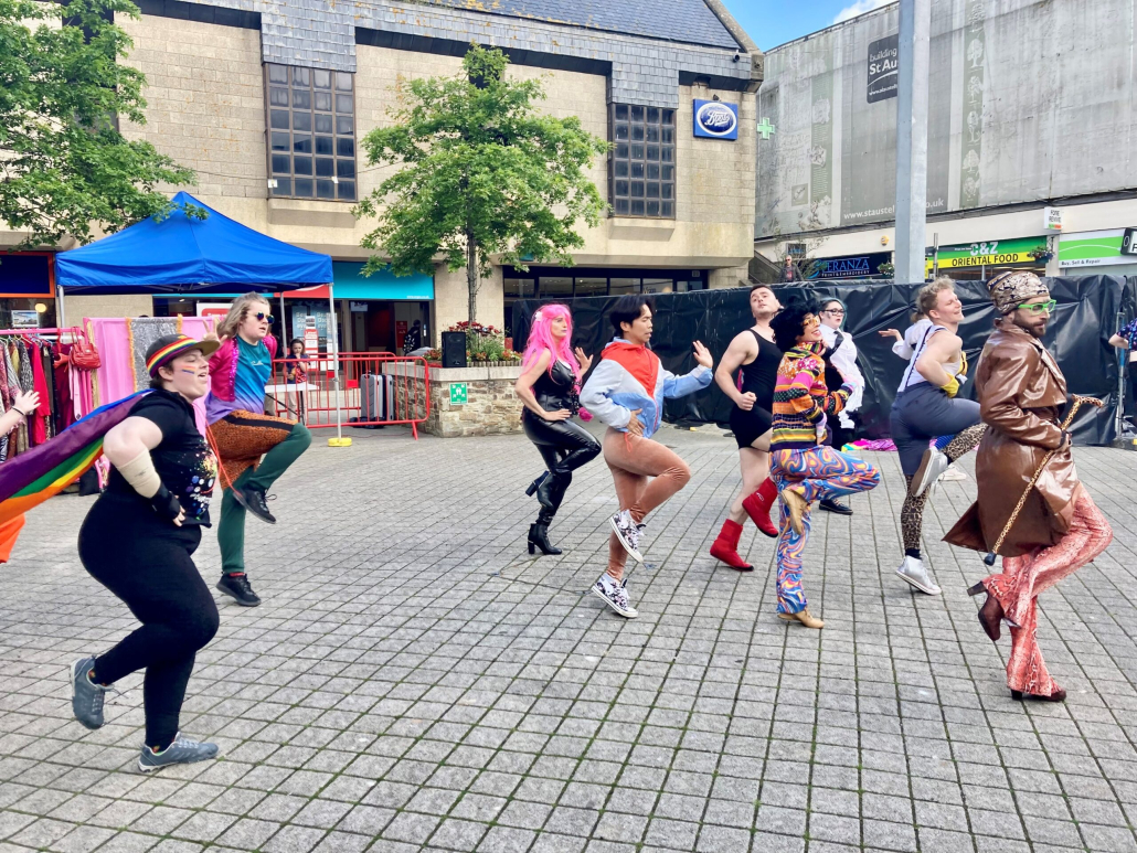 The London based dance theatre collaboration were touring in Cornwall with Carn to Cove. Commissioned to perform in St Austell as part of the Tresorys Kernow project (which is funded by the Community Renewal Fund), their production GLAM incorporates bold choreography, a sparkling wardrobe, astonishing acrobatics (all impressively performed in platform heels of course), brilliant audience interaction, and a feel-good soundtrack.
